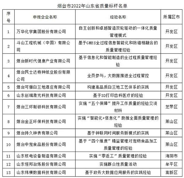 克日,,,,,山东省工信厅印发《关于宣布2022年全省质量标杆名单的通知》,,,,,东升国际:66856top股份乐成入选为2022年山东省质量标杆企业。。。。。。。